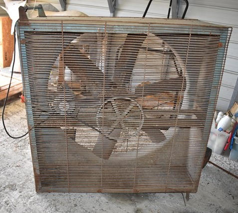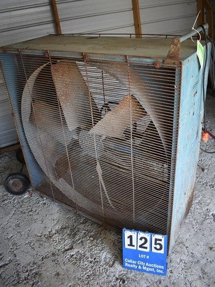 Large Easy Air fan, approx. 53" x 53", comes with a pair of wheels (NOT CURRENTLY ATTACHED)
