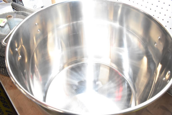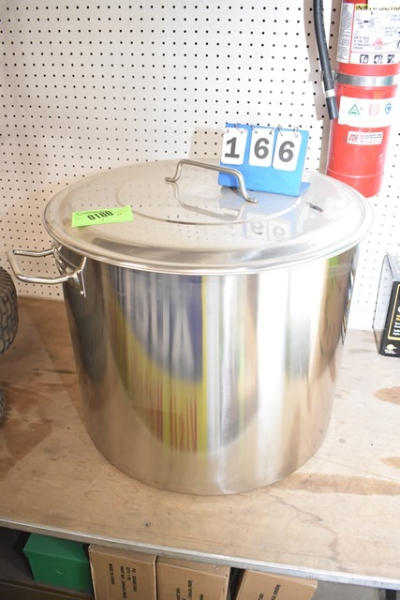 Approx. 24" wide x 20" tall stock pot with lid, stainless steel