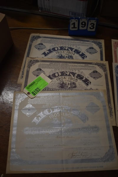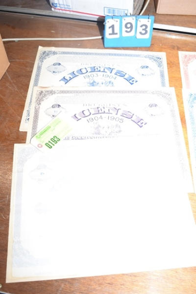 Lot of 1903 - 1904, 1904 - 1905, 1905 -1906 New Haven Druggist's Licenses