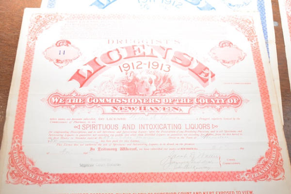 Lot of 1911 - 1912, 1912 - 1913, 1913 - 1914 New Haven Druggist's Licenses