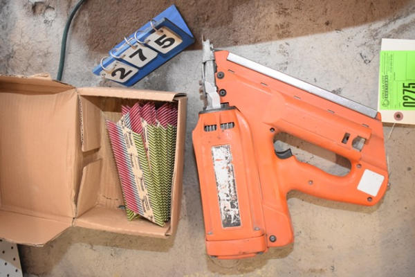 Paslode nail gun with partial box of nails