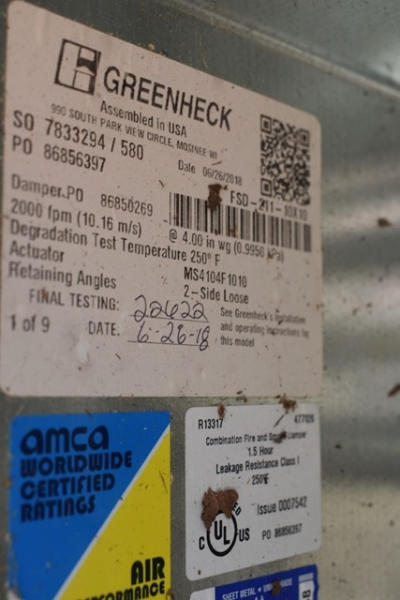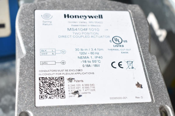 Greenheck damper with a Honeywell 2-position direct coupler actuator, 10" x 10", also has a 6" ceiling damper, round