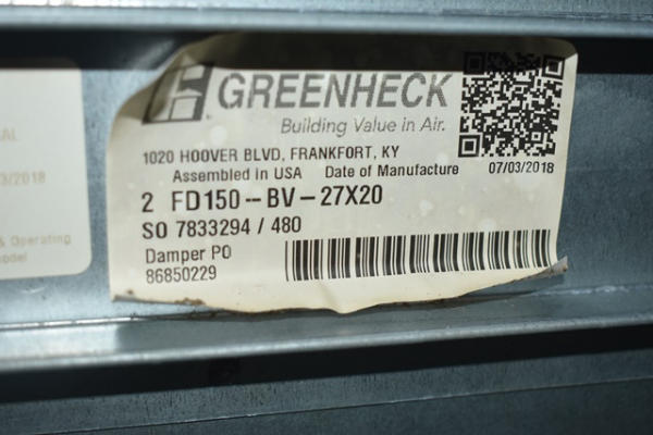 Fire damper, 27" x 20"