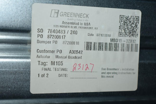 Damper assembly, 38" x 12"