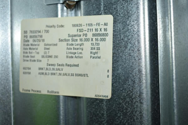 Damper assembly 16" x 16" with 2-position, direct coupled actuator