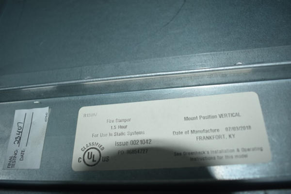 Fire damper, 12" x 10"