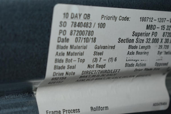 Control damper, 32" x 30"