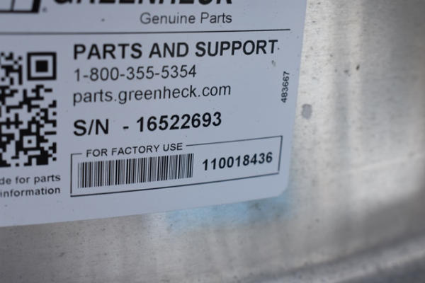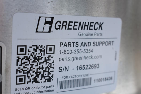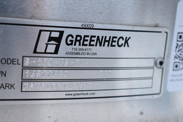 Greenheck Model G-183-VG-20-X, SN: 16522693 roof top exhaust unit