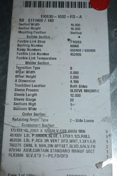 Fire damper, 16" x 14"