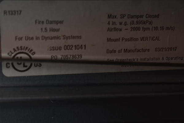 Lot of fire dampers, 44" x 18" vertical, spring loaded