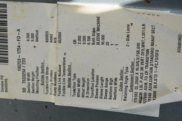 Fire damper, Type C, 6"