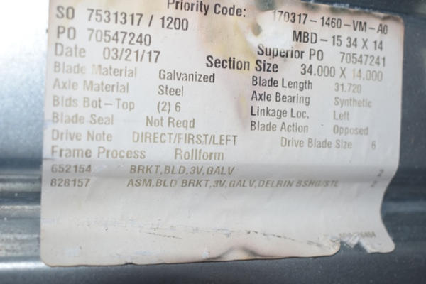 Fire damper, 34" x 14"