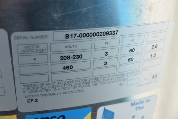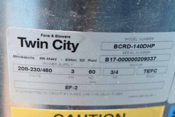 Twin City Fans & Blowers Power Ventilator, Model BCRD-140DHP, 3 phase, 208-230/460 volt power supply, 3/4 HP