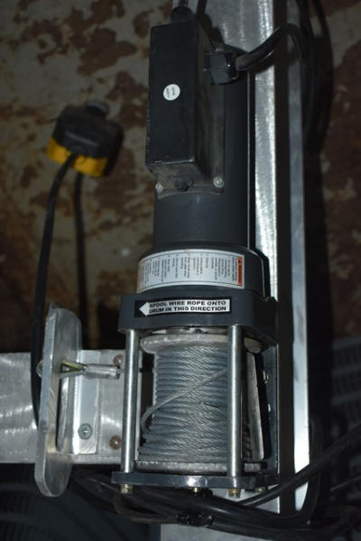 Aluminum lifting frame, 98" long, with a Chicago Electric Power Tools, 1500 lb. AC powered winch, 120 volts