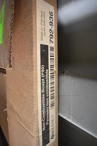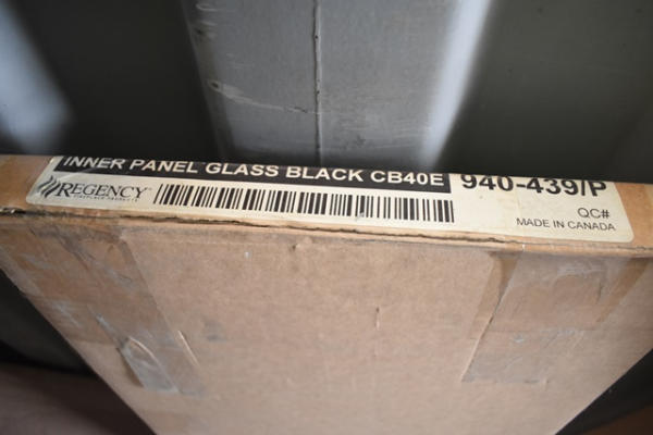 Non-combustible board made by Regency, 48" x 22", and an inner panel glass black