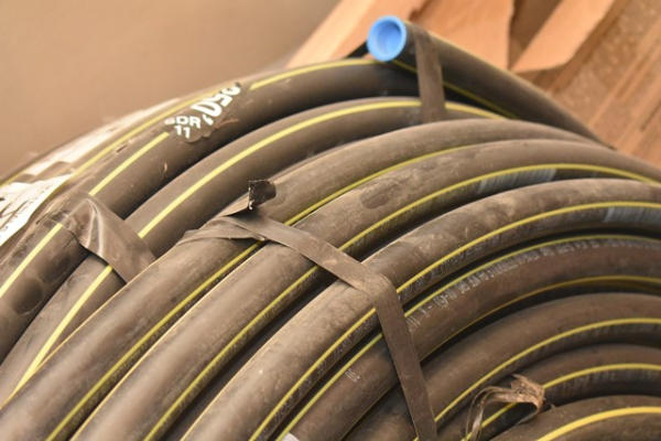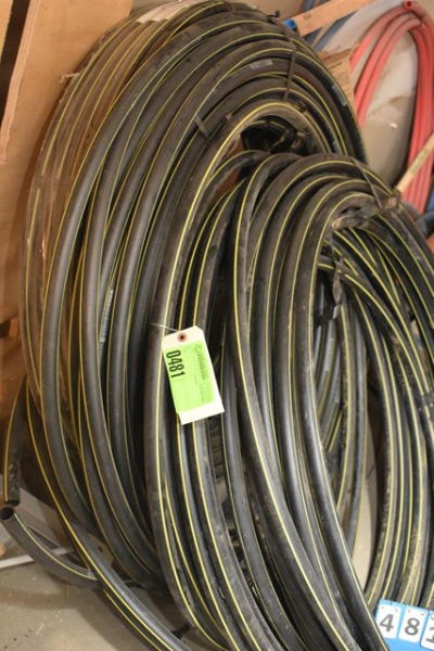 Lot of 3 rolls of 1" black plastic pipe, 1 appears to be full, 2 are partial rolls