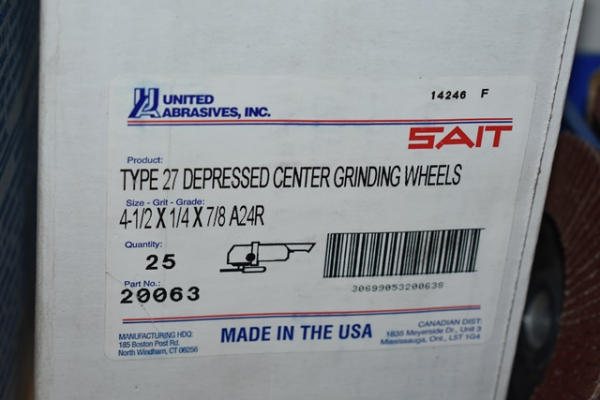 Lot of 2 boxes of Sait 4 1/2" grinding wheels