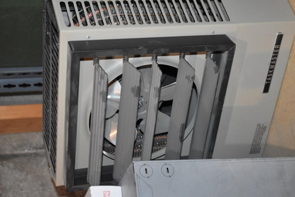 Lot consists of a Task Master Hanging Electric Heater, Roof Vent, and assorted pipe fittings