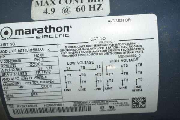 A.O. Smith 7.5 HP, 3 phase motor, 230/460 volts