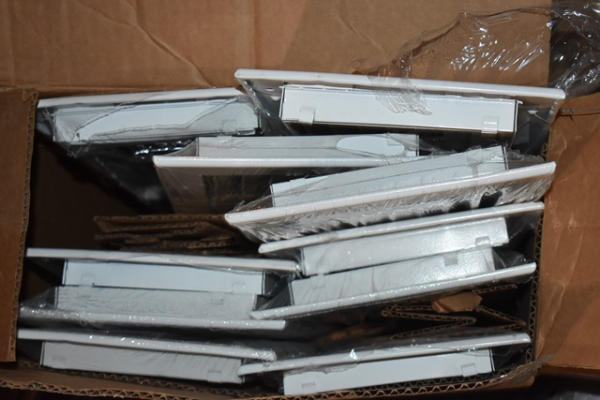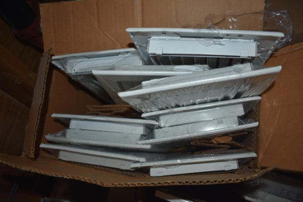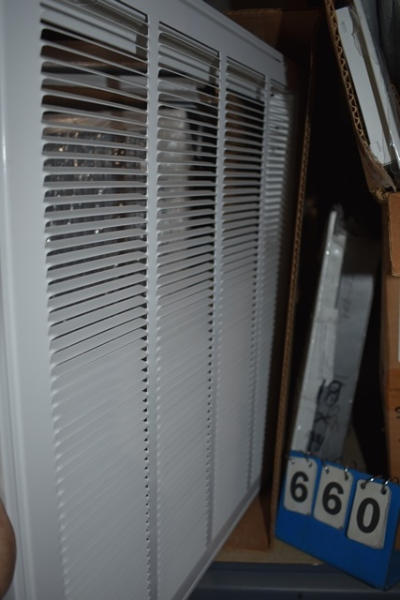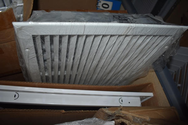 Partial shelf lot of assorted floor registers and grills