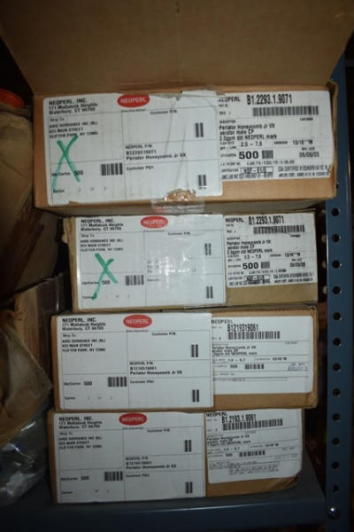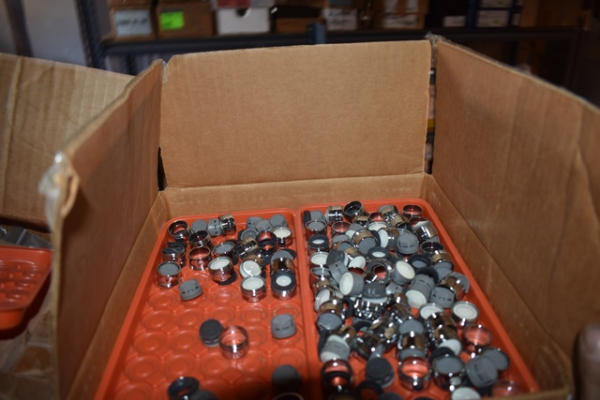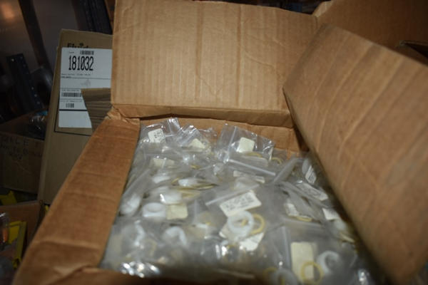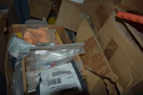 Shelf lot of plumbing supplies including Purolator Honeycomb Jr. VX Aerators, male; faucet repair items, etc.