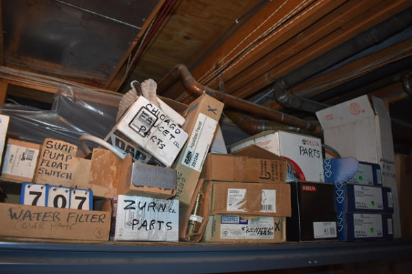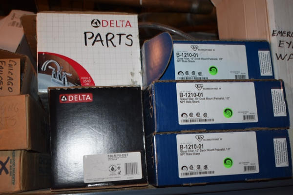 Large shelf lot of assorted left over faucet parts
