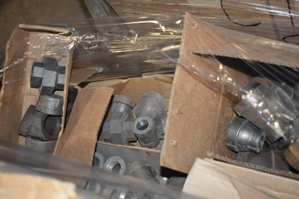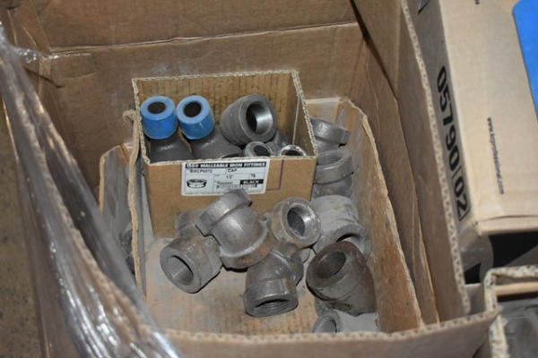 Pallet lot of mostly black iron fittings up to approx. 2"