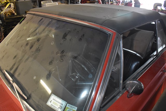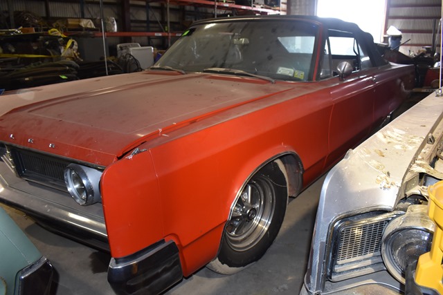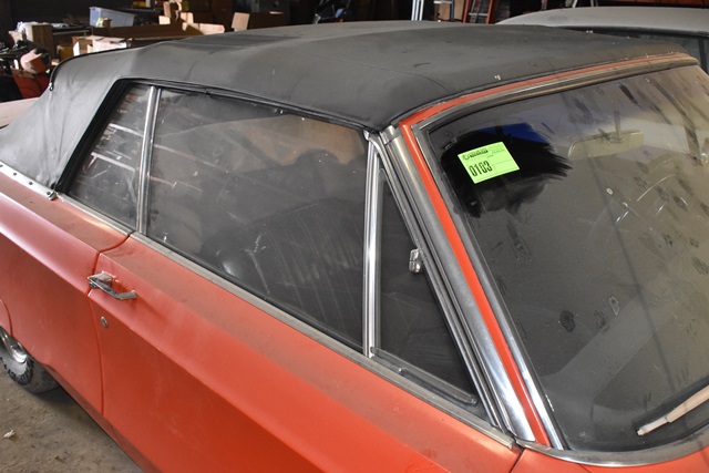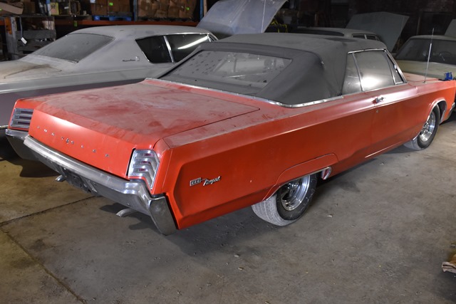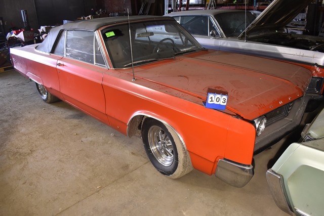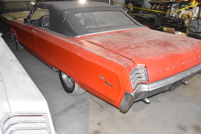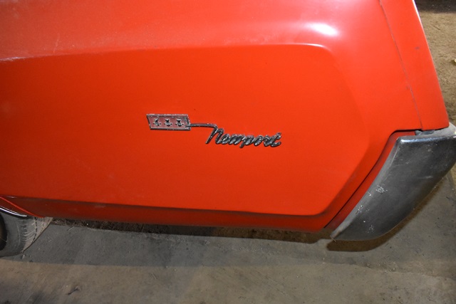 1967 Chrysler Newport Convertible, Red, VIN# CE27G73156923. Approx. 41,705 +/- Miles. Believed to be 383 Automatic, Engine Turns Over By Hand. Ignition Key Only (No Trunk Key) and Transferable Registration Upon Completion of Sale.
