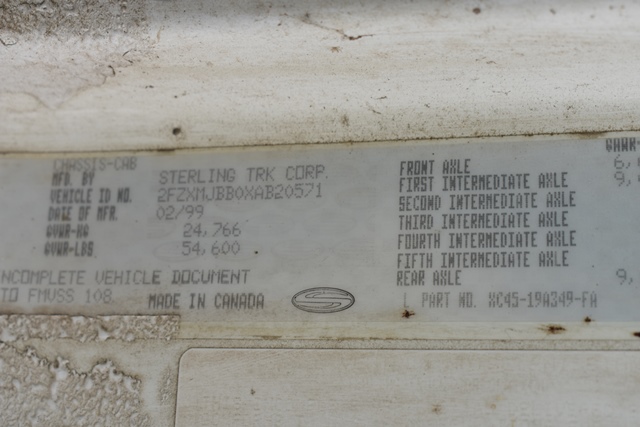 1999 Sterling Tri-Axle Dump Truck. VIN# 2FZXMJBB0XAB20571. Approx. 279,571 +/- Miles. Bad Engine, Eaton-Fuller Transmission, approx. 16'L Dump Body. Transferable Paperwork Available Upon Completion of Sale.