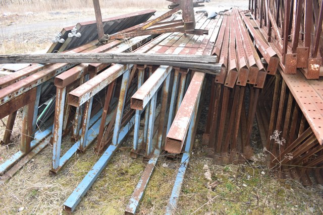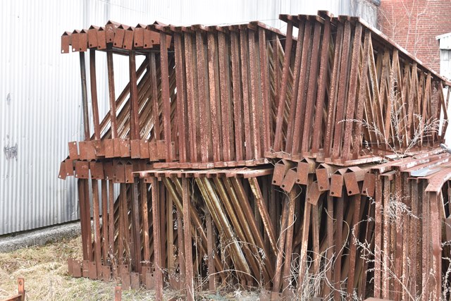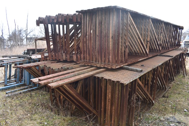 Large Lot of Pallet Racking Uprights, Does Not Include Doors or Gantry Sitting Against/On Top Of. No Cross Braces, Just Uprights, No Additional Steel Laying On Ground Included.