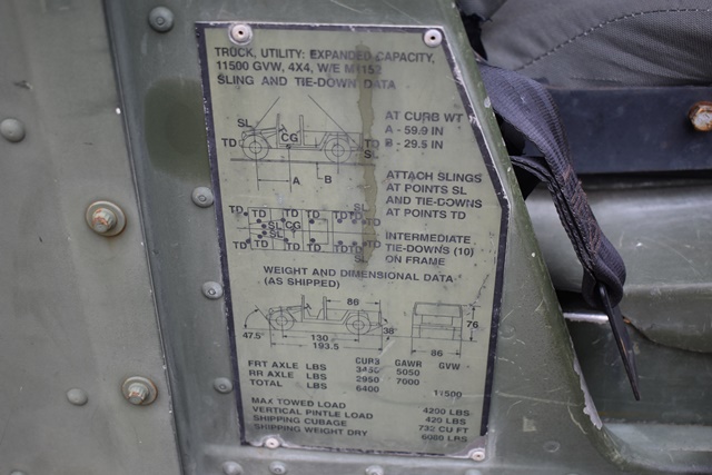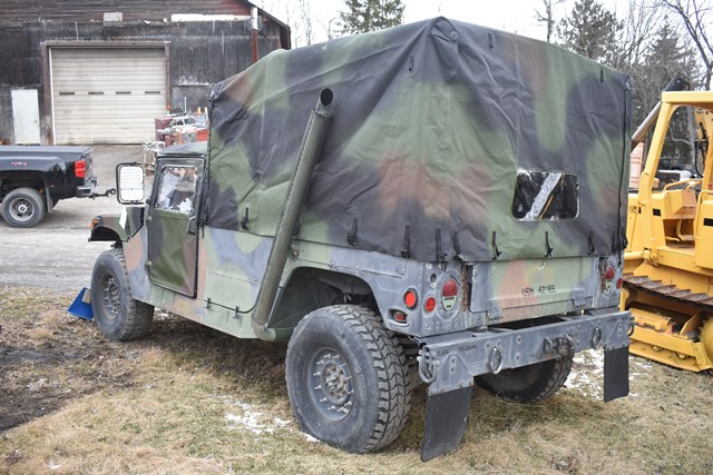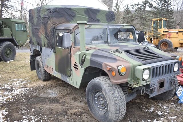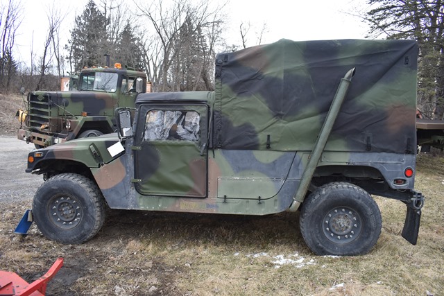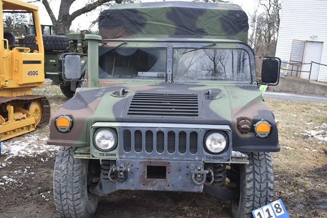 #118 – 2006 M1152 4x4 Humvee, Serial No. 240885. 6.5L, Turbo Diesel Motor with 4 Speed Overdrive. Has A/C, Approx. 1,315 +/- Miles. 429 +/- Hours. Brand New Canvas Doors and Roof. Starts and Moves. NYS Transferable Paperwork Available Upon Completion of Sale. Located 1027 Leesome Lane, Altamont, NY 12009.