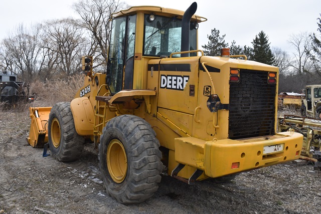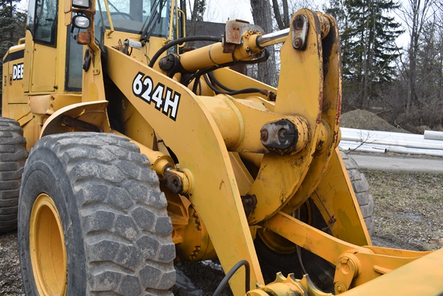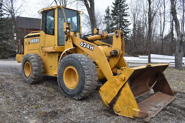 John Deere 624H Loader with Multipurpose Clamp Bucket, Approx. Bucket Width 8 1/2'. 7,778 +/- Hours. Starts and Moves. 6.8L Diesel John Deere Motor, Engine Model 6068HDW50. 20.5-25 Tubeless Tires. Located at 1027 Leesome Lane, Altamont, NY 12009.