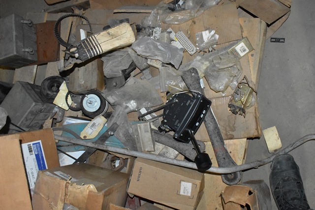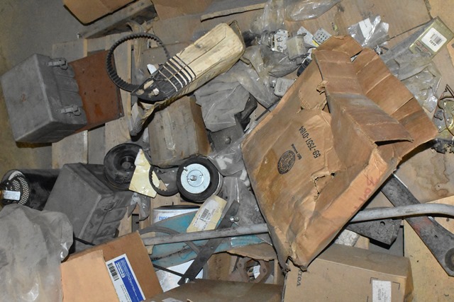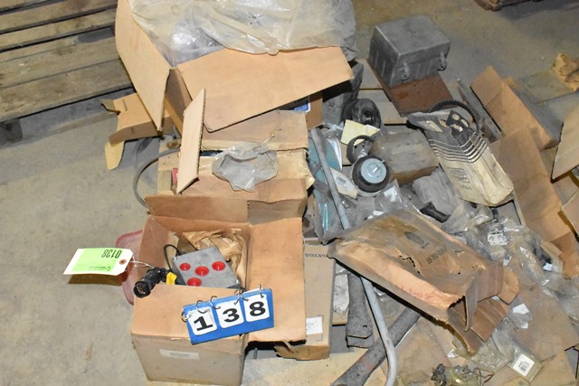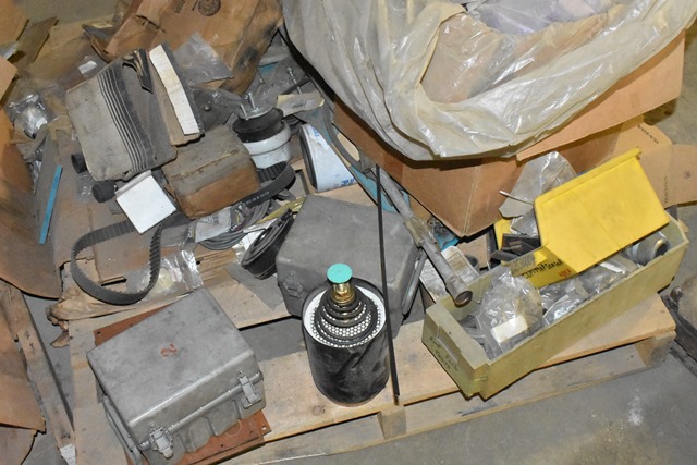Pallet of Parts Including Air Conditioning Pulleys, Electrical Connectors, Hydraulic Connector