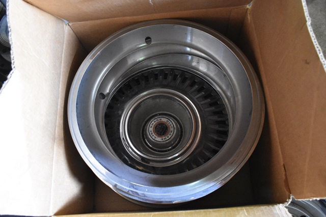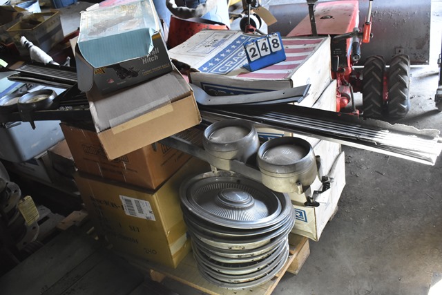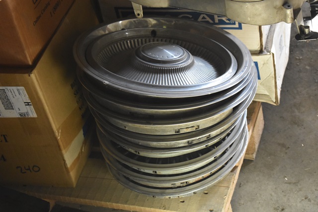 Pallet of '67 Newport Parts Rims, Hubcaps, Seatbelts, Etc.